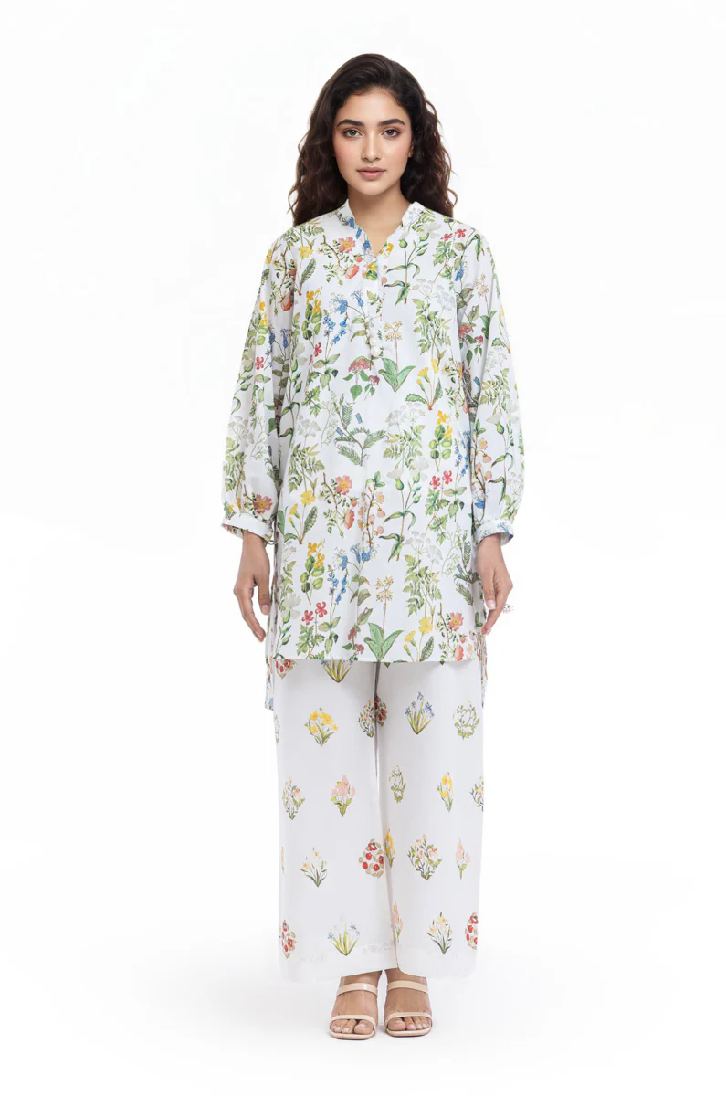 Printed Lawn Straight High Low Shirt.