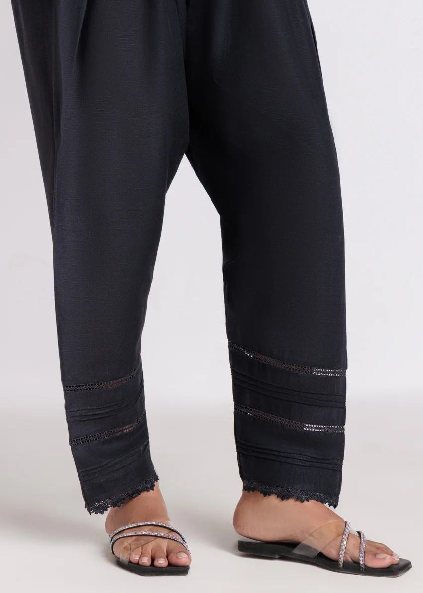 Trouser:Dyed Light Khaddar Shalwar With Lace Finishing & Pintex